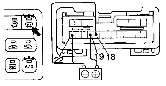 1. Connect the positive (+) lead from the battery to terminal A - 19 and negative (-) lead to terminal A - 18 and A-22.