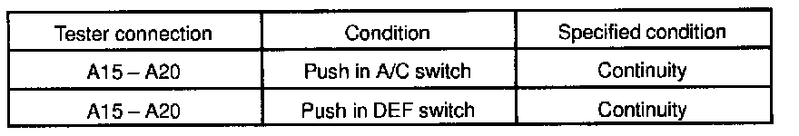 6. INSPECT DEF AND A/C SWITCH CONTINUITY