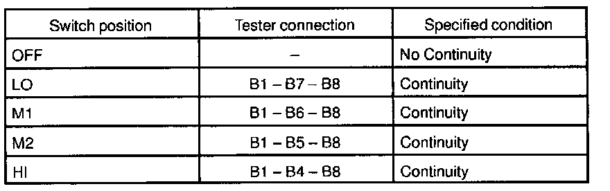7. INSPECT BLOWER SPEED CONTROL SWITCH CONTINUITY