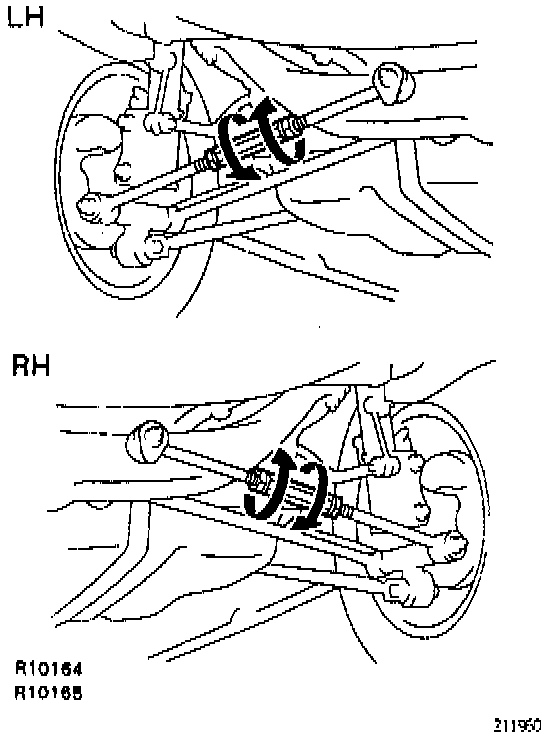 ^ One turn of each adjusting tube will adjust the toe-in by about 54 ft. (0.9°, 9 mm, 0.354 inch)