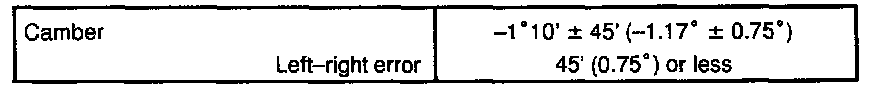 Camber is not adjustable, if measurement is not within specification, inspect and replace the suspension parts as necessary.