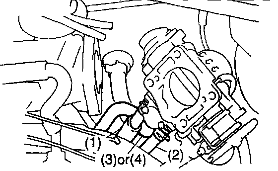 - Vacuum hose (from port "Q" of EGR vacuum modulator) from port "E" of throttle body