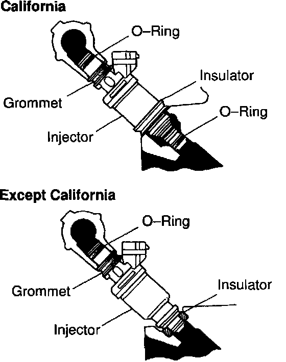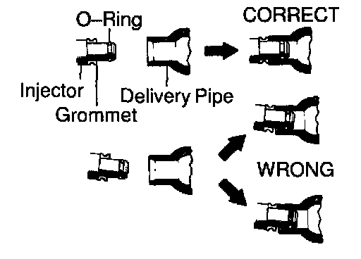 Before installing the injector, must apply spindle oil or gasoline on the place where a delivery pipe or an intake manifold touches an O-ring of the injector.