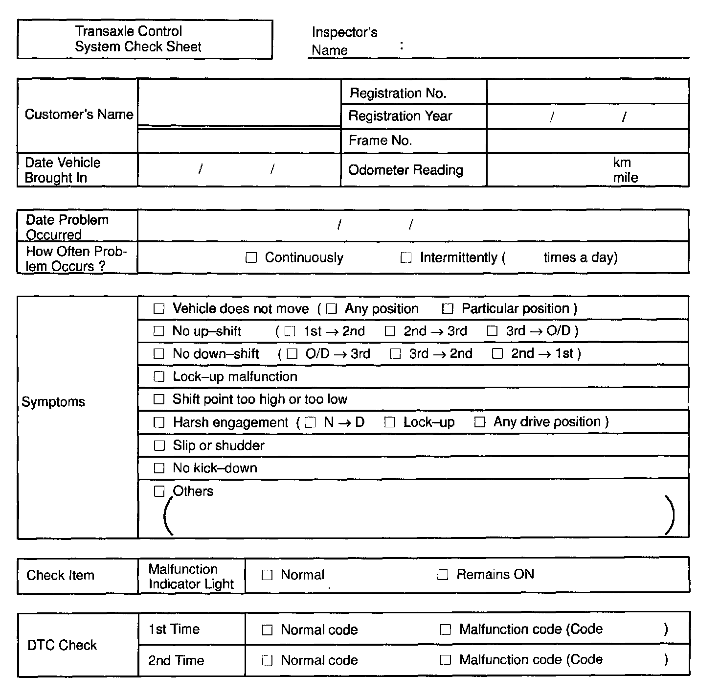 Customer Problem Analysis Check Sheet