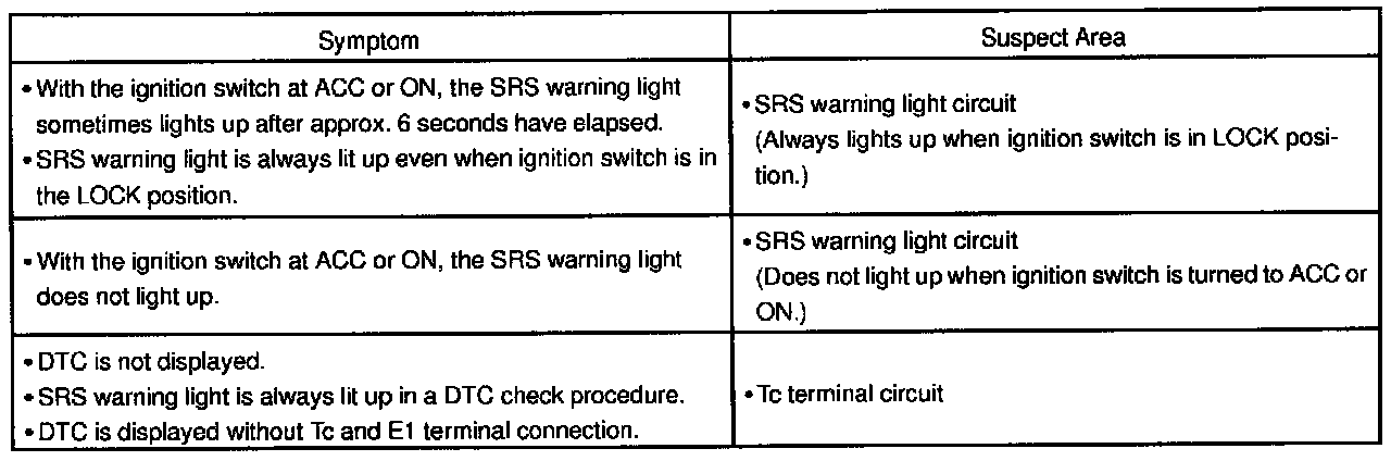 Proceed with troubleshooting of each circuit in the table shown.