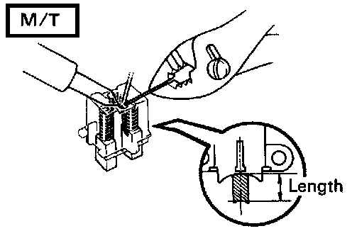 If the exposed length is less than minimum, replace the brushes (M/T) or brush holder assembly (A/T).
