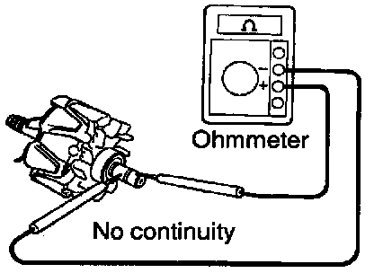 Using an ohmmeter, check that there is no continuity between the slip ring and rotor.