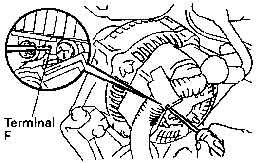 - With terminal F grounded, start the engine and check the voltmeter reading of terminal B.