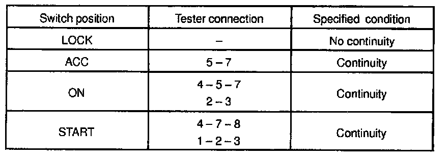 INSPECT IGNITION SWITCH CONTINUITY