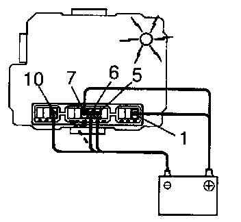 a. Connect the positive (+) lead from the battery to terminals 1 and 7, the negative lead to terminals 5 and 10.