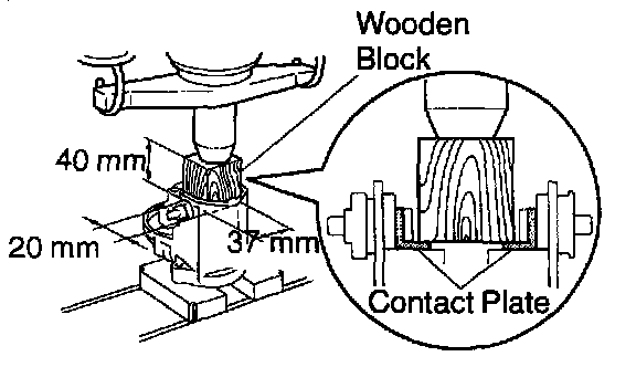 a. Put a wooden block on the contact plate and press it down with a hand press.
