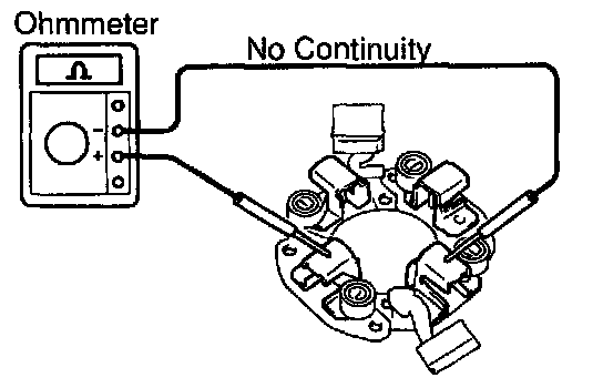 Using an ohmmeter, check that there is no continuity between the positive (+) and negative (-) brush holders.