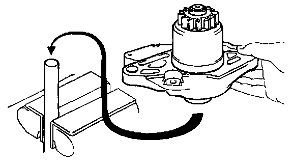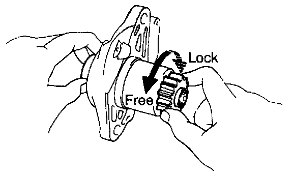 Hold the starter clutch and rotate the pinion gear counterclockwise, and check that it turns freely. Try to rotate the pinion gear clockwise and check that it locks.