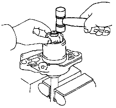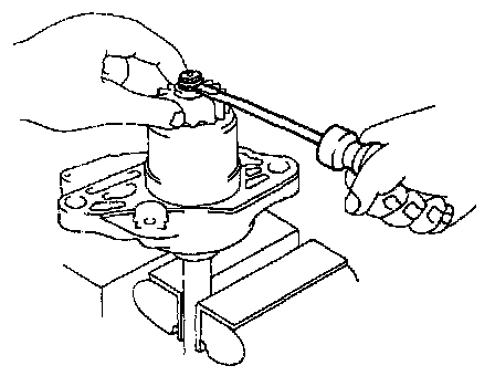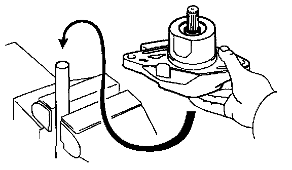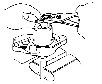 1. Mount a brass bar in a vise, and install the starter housing and clutch assembly to the brass bar.