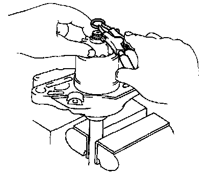 6. Using pliers, compress the snap ring.