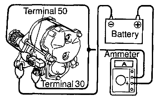 b. Check that the starter rotates smoothly and steadily with the pinion gear moving out. Check that the ammeter shows the specified current.