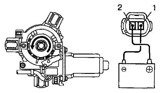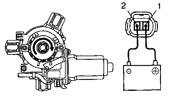 a. Connect the positive (+) lead from the battery to terminal 1 and the negative (-) lead to terminal 2, check that the - motor turns clockwise.