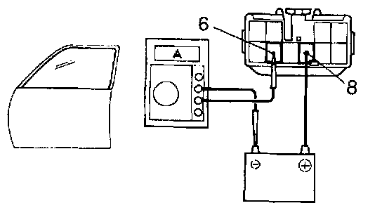 b. Connect the positive (+) lead from the ammeter to terminal 6 of the wire harness side connector and the negative (-) lead to negative terminal of the battery.
