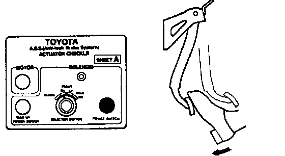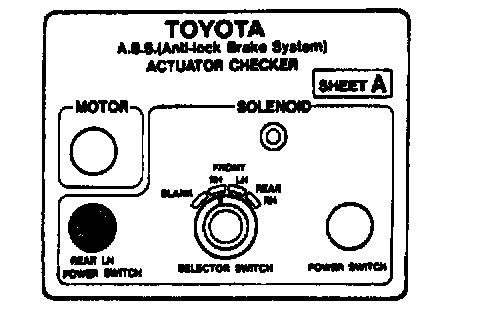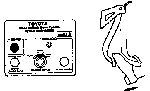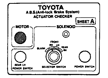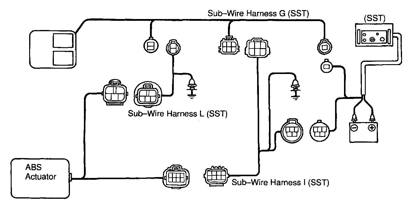 ON-VEHICLE INSPECTIONHINT: Using the ABS actuator checker (SST), check the operation of the actuator. If the actuator does not operate, check the operation of sub-wire harness G. If the solenoid and/or pump motor relay are abnormal, replace the relay and inspect the actuator operation again.