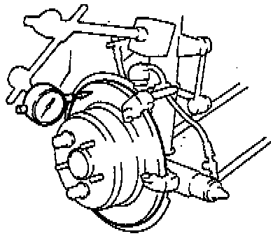 If the disc's runout is at the maximum value or greater, check the bearing play is in the axial direction and check the axle hub runout. If the bearing play and axle hub runout are not abnormal, adjust the disc runout or grind it on a "On-car" rake lathe.