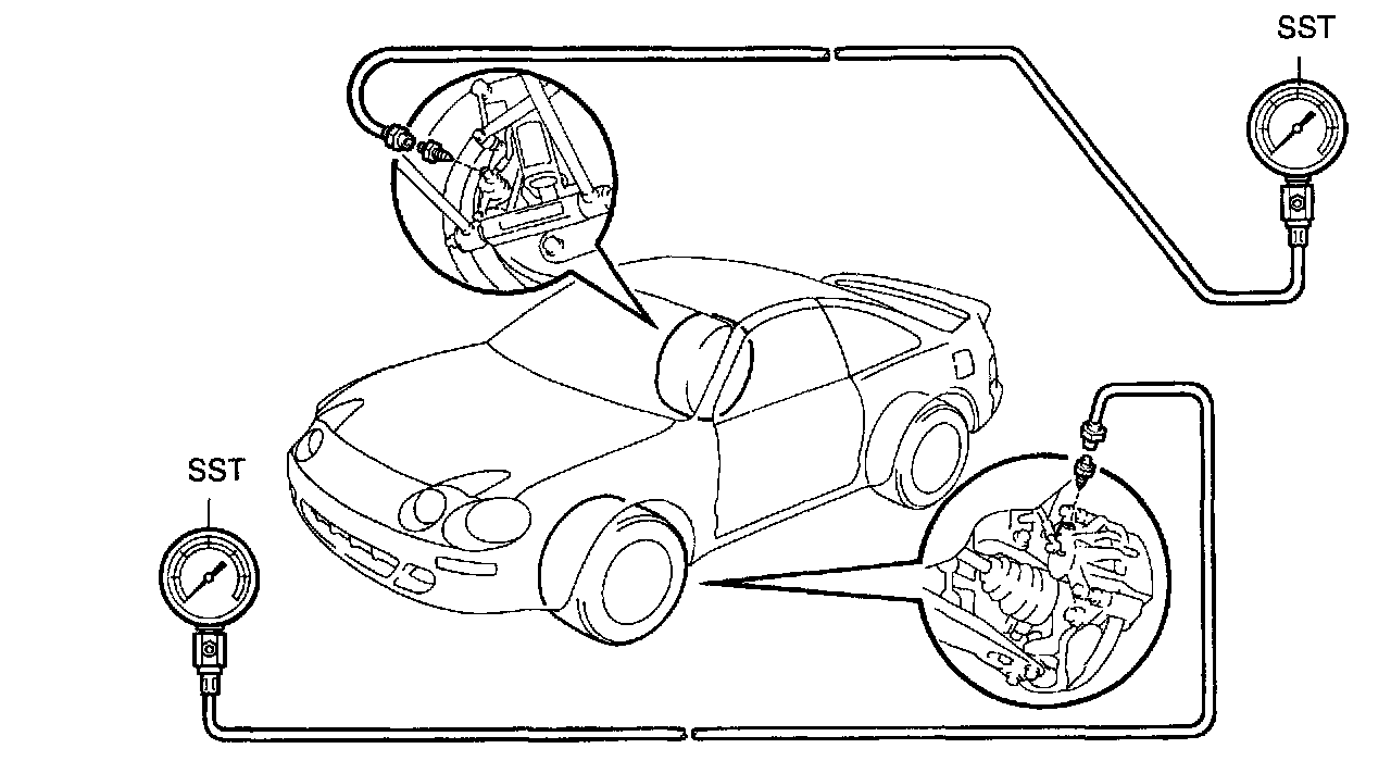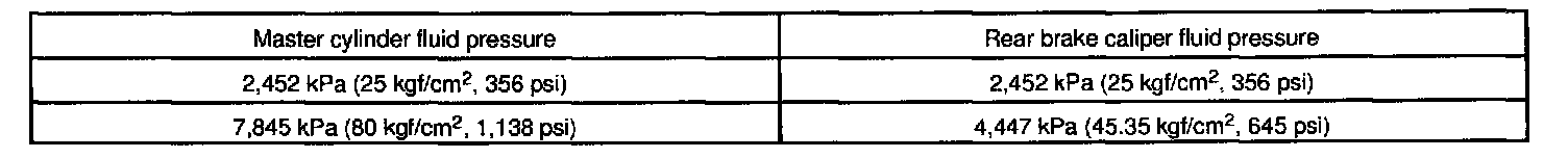 When inspecting the fluid pressure, inspect the left font and right rear together, and the right front and left rear together. If the rear caliper pressure is incorrect, replace the P valve assembly.