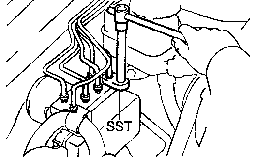 Using SST, disconnect the brake lines from the ABS actuator.