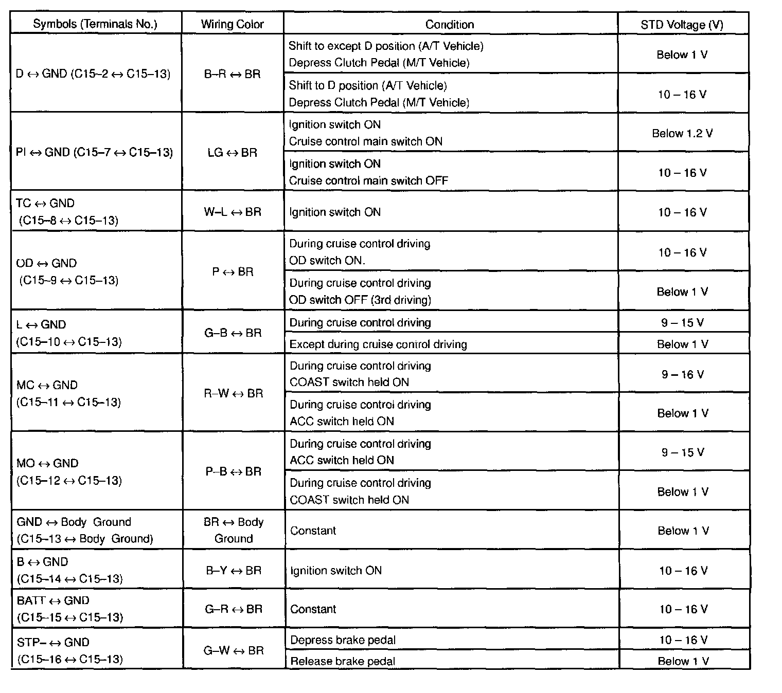 ECM Pinout values