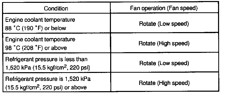 1. INSPECT CONDENSER FAN OPERATIONInspect the fan operation at these conditions, as shown in the chart.