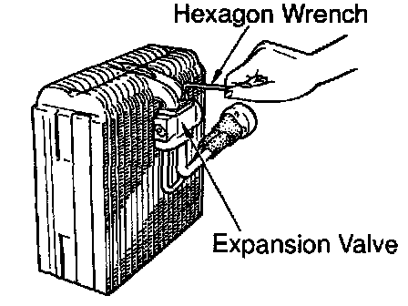 Using a hexagon wrench, remove the 2 bolts and separate the evaporator and expansion valve.