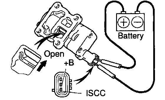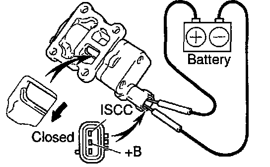 a. Connect the positive (+) lead from the battery to terminal +B and negative (-) lead to terminal ISCC, and check that the valve is closed.