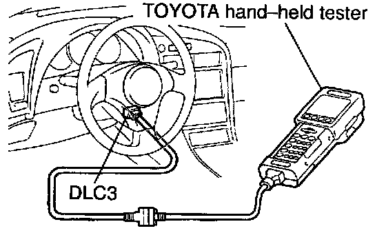 4. Connect the TOYOTA hand-held tester to DLC3 at the lower portion of the instrument panel.