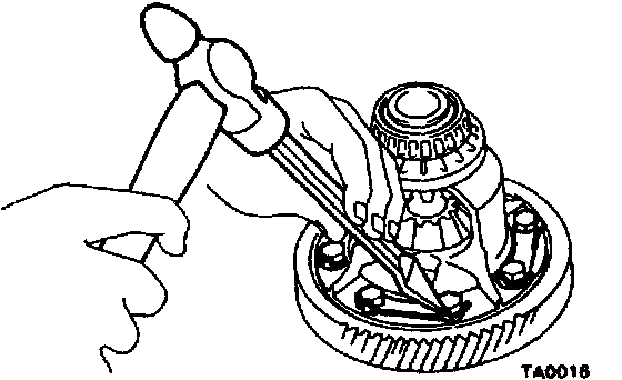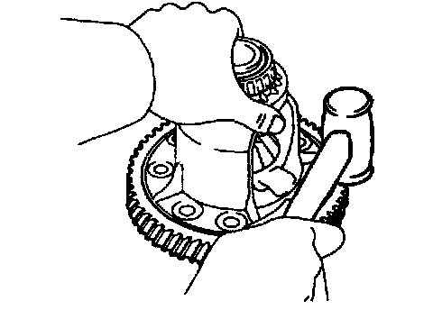 c. Using a copper hammer, tap on the ring gear to remove it from the case.