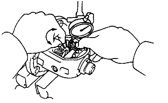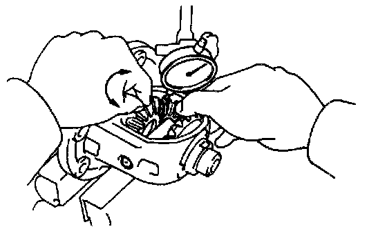 Using a dial gauge, measure the backlash of each side gear while holding one pinion toward the case.