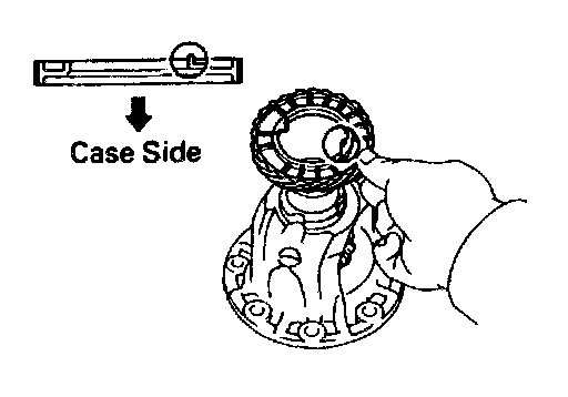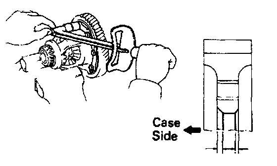 d. Check the side gear backlash. Measure the side gear backlash while holding one pinion gear toward the case.