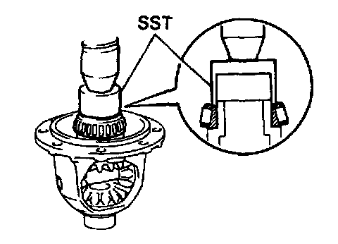 b. Using SST and a press, press in the RH side bearing onto the differential case.
