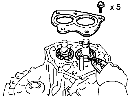 Remove the 5 bolts and rear bearing retainer.
