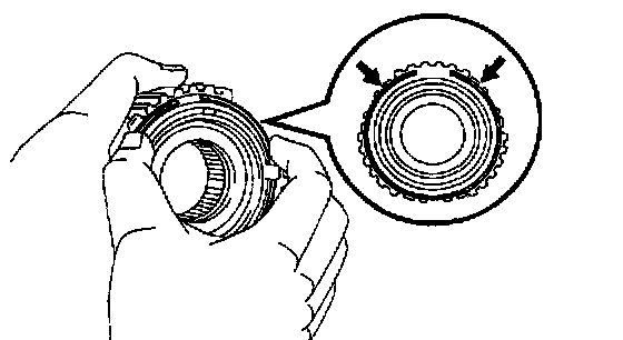 Turn the middle No. 5 synchronizer ring in one direction while pushing it to the outer No. 5 synchronizer ring. Check that the ring locks.