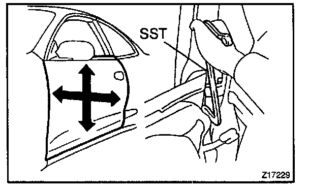 a. Using SST, adjust the door by loosening the body side hinge bolts.