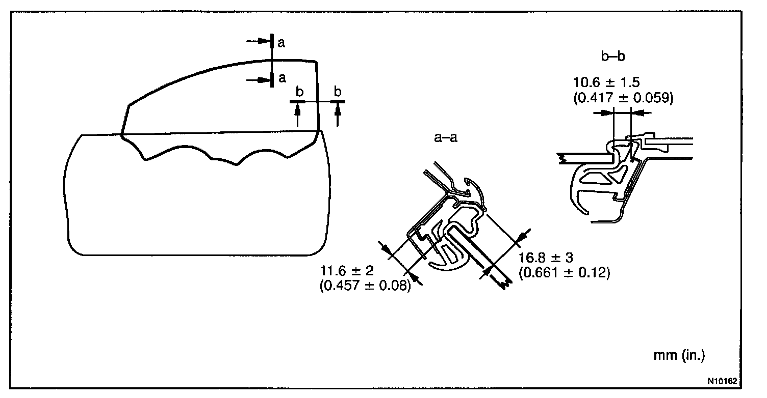 5. The upper edge of the glass cannot be seen from outside of the vehicle (The edge is touching the roof side rail weatherstrip).