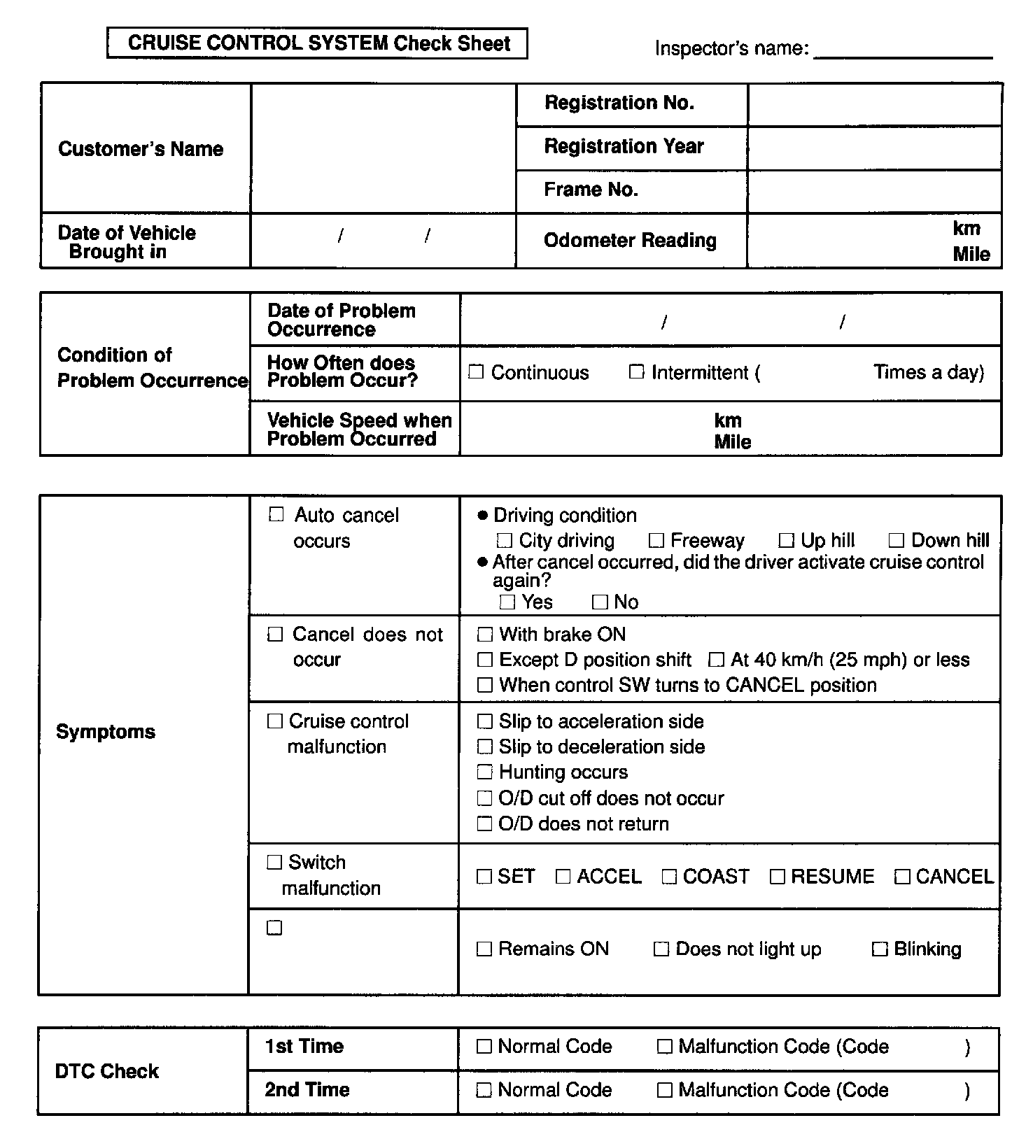 Customer Problem Analysis Check Sheet