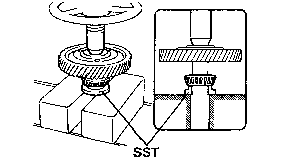 Using SST and a press, install a new bearing to the counter drive gear.