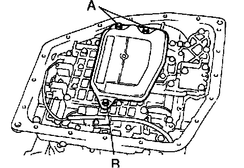 d. While disconnecting the manual valve connecting rod from the manual valve lever, remove the valve body with the manual valve together.