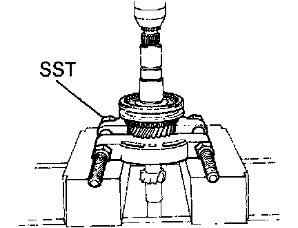 Using SST and a press, remove the No.2 hub sleeve assembly, 3rd gear, synchronizer ring and needle roller bearings.