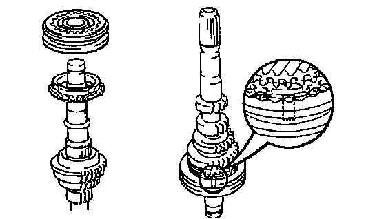 d. Using a feeler gauge, measure the clearance between the synchronizer ring back and gear spline end.