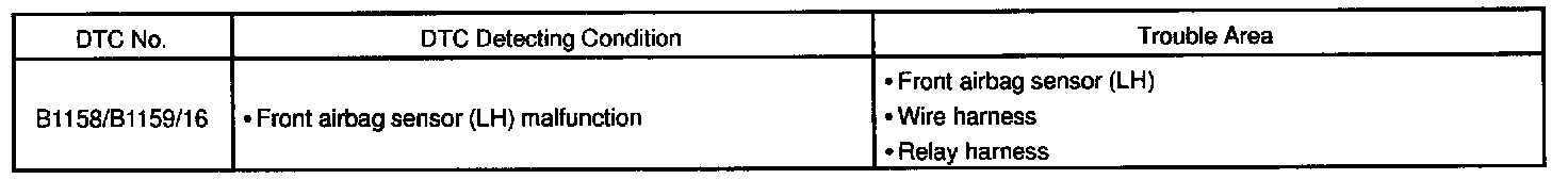 DTC B1158/B1159/16 is recorded when malfunction is detected in the front airbag sensor (LH) circuit.