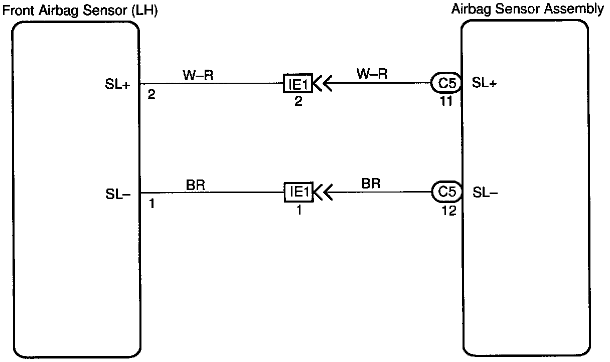 The front airbag sensor (LH) circuit consists of the airbag sensor assembly and front airbag sensor (LH).