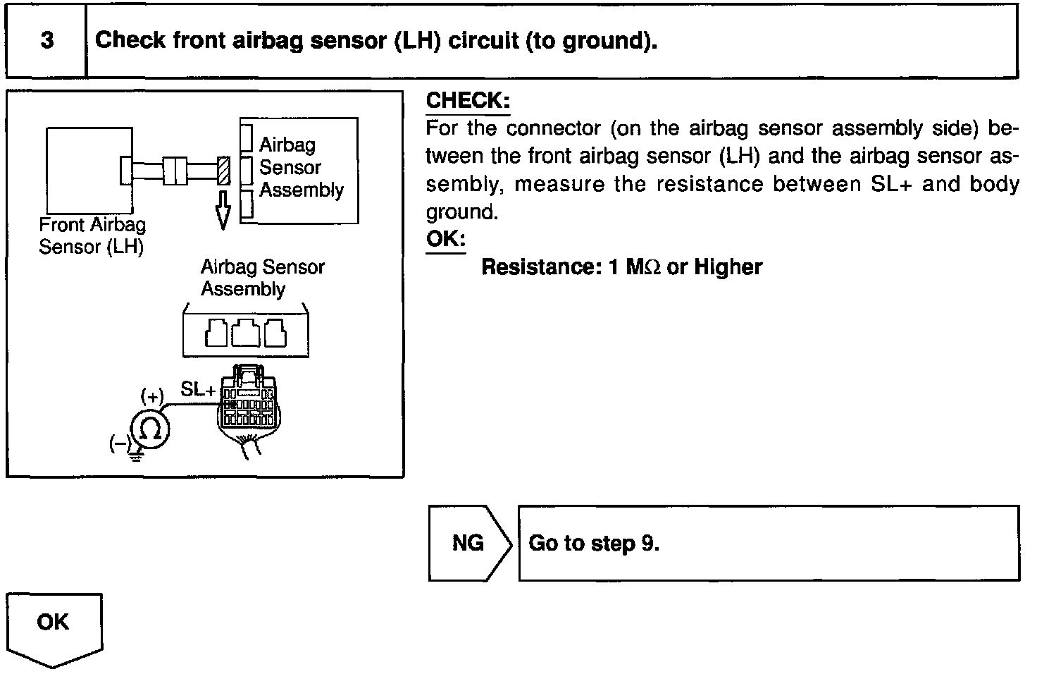 Step 3/Check front airbag sensor (LH) circuit (to ground)