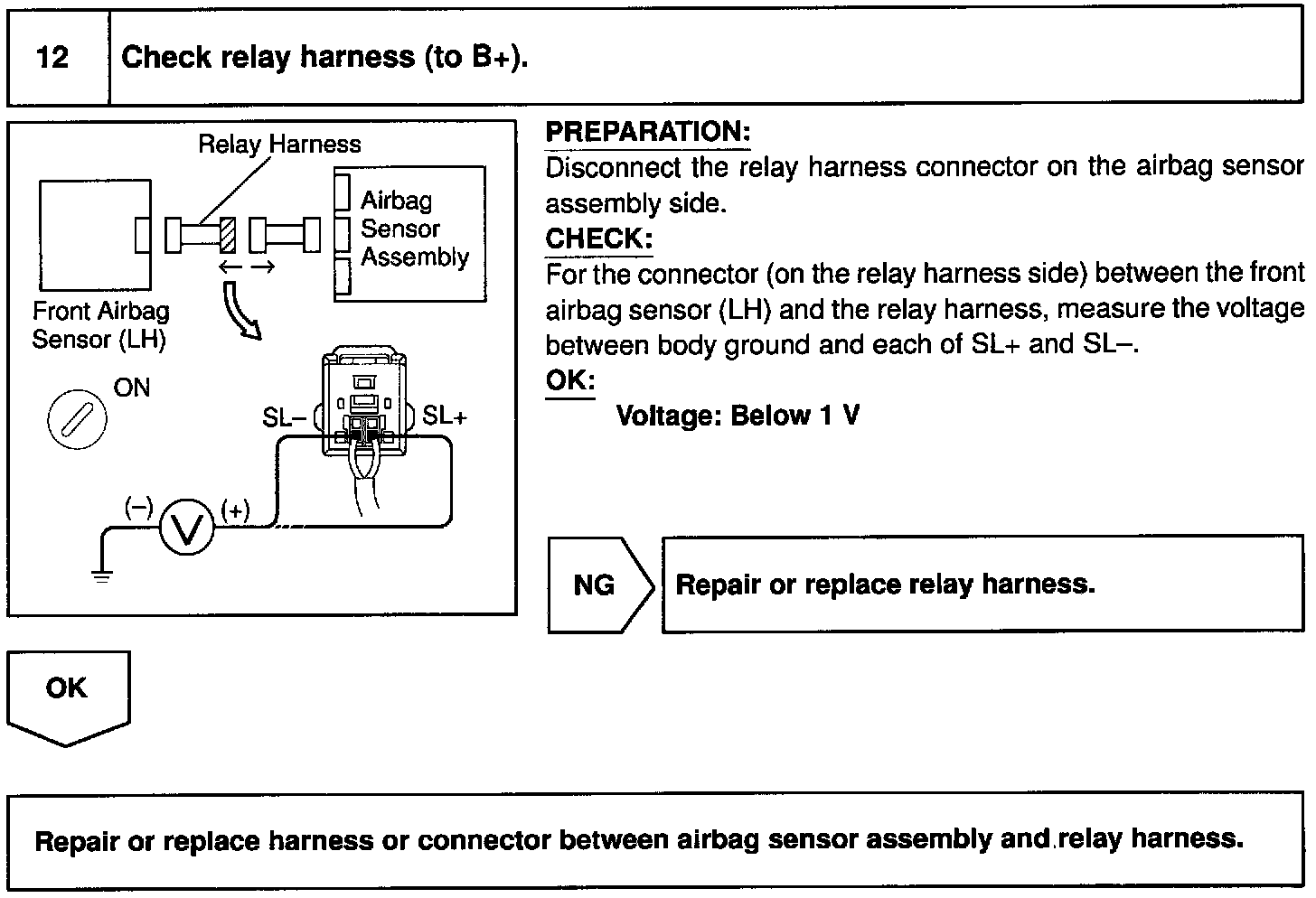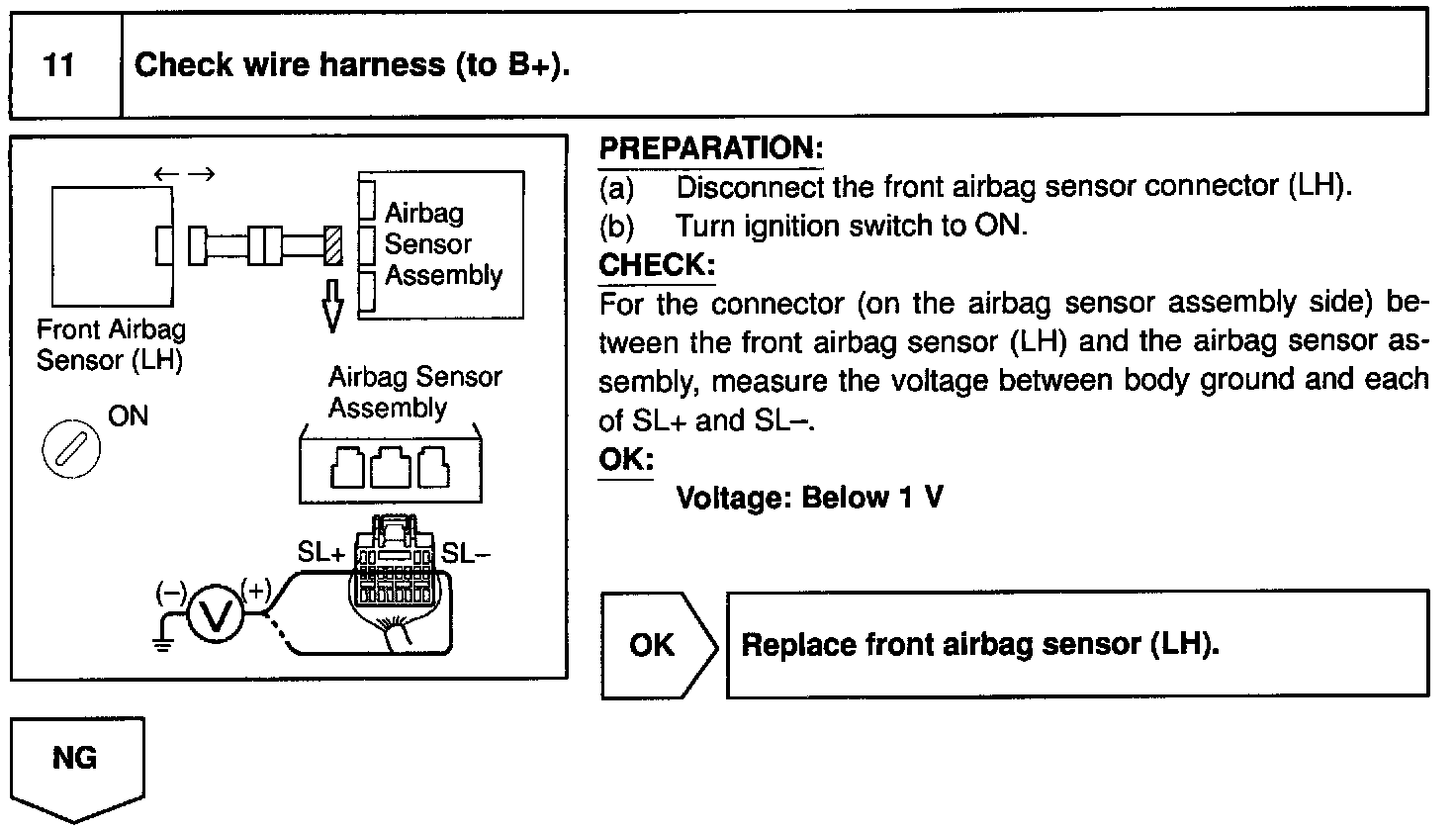 Step 4/Check front airbag sensor (LH) circuit (to B+)