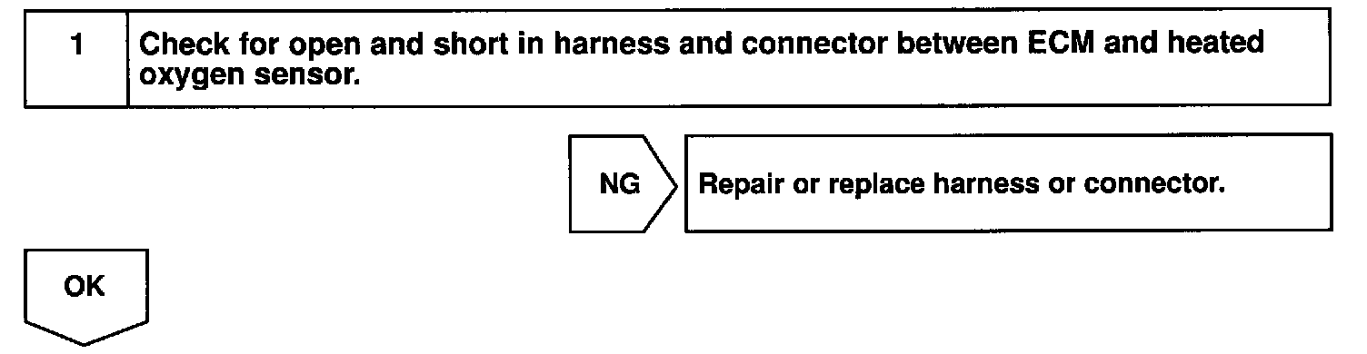 The ECM judges by the electromotive force from the heated oxygen sensor whether the air-fuel ratio is RICH or LEAN and controls the injection time accordingly. However, if malfunction of the heated oxygen sensor causes output of abnormal electromotive force, the ECM is unable to perform accurate air-fuel ratio control.