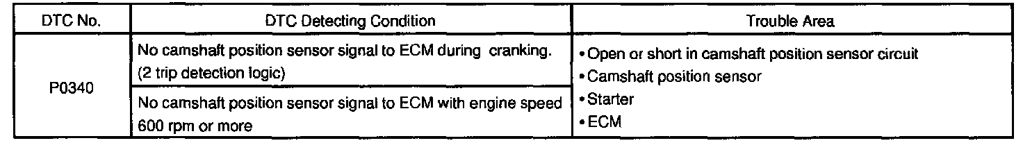 DTC P0340 - Camshaft Position Sensor Circuit Malfunction
